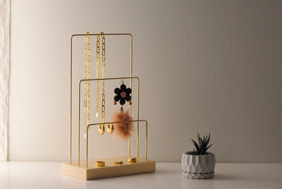 Just image picking your favorite necklace from this minimalism jewelry stand in the morning, or hanging your long dangling earrings before going to bed on this decorative piece, no more mess, no more rush...